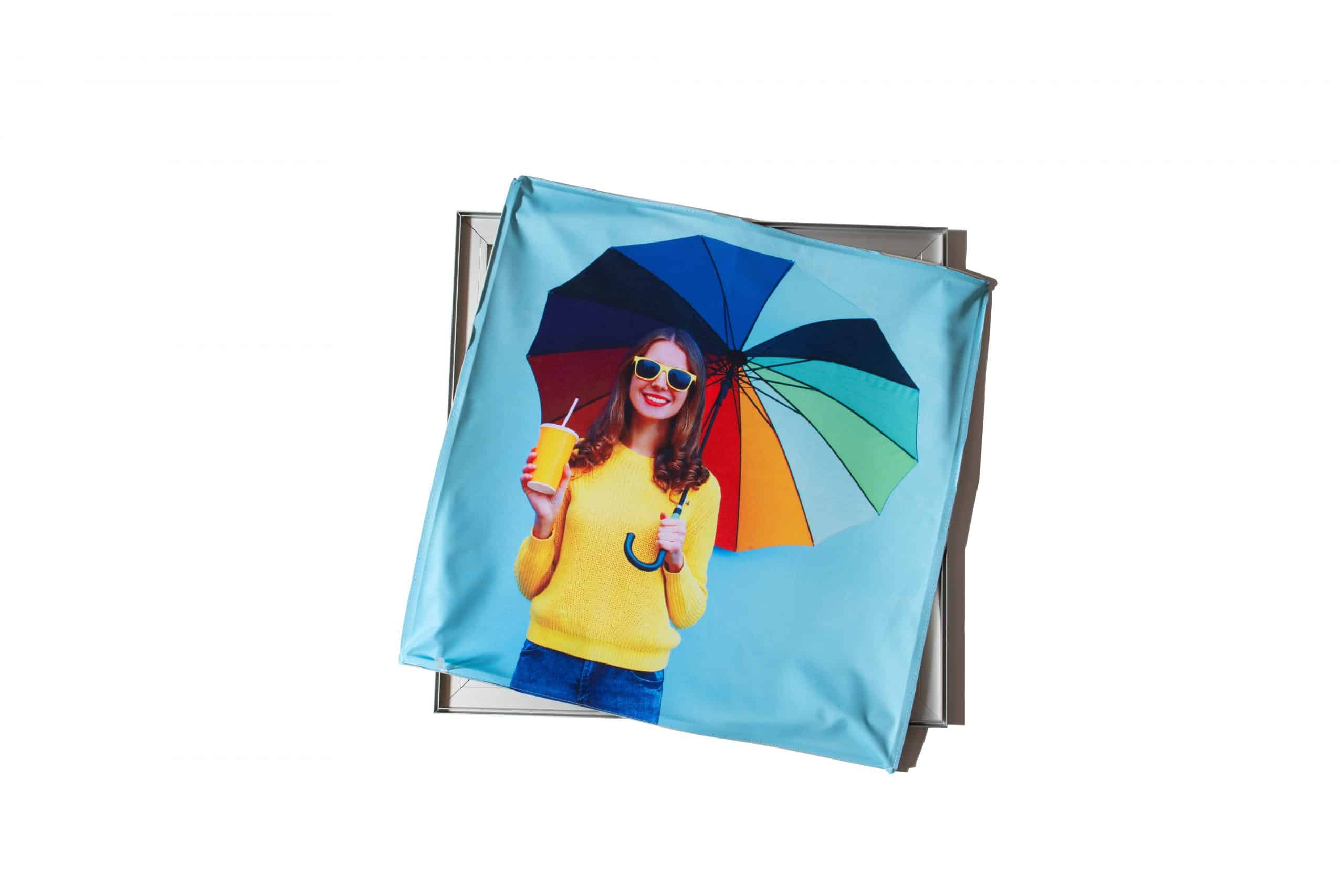 Our SEG fabric and frames stand out in the industry because of our unique quality materials and cutting-edge fabric graphic printing technology. SEG fabric graphics are dye-sublimation printed fabric finished with a thin strip (also known as a gasket) on its perimeter. The gasket is stitched directly to the edge of the fabric on all four sides, creating a cover inserted into any framework with a recessed groove. This process results in vivid, crisp imagery printed with borderless edges.